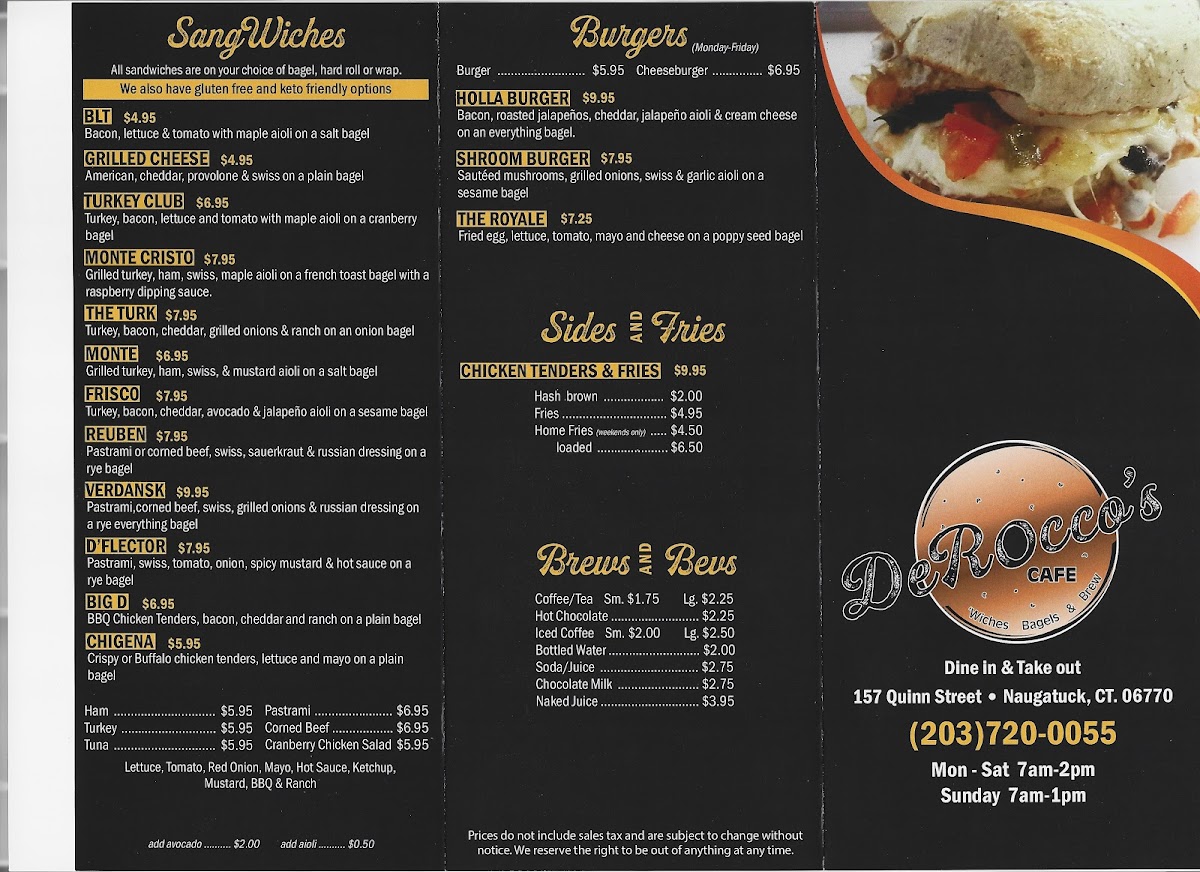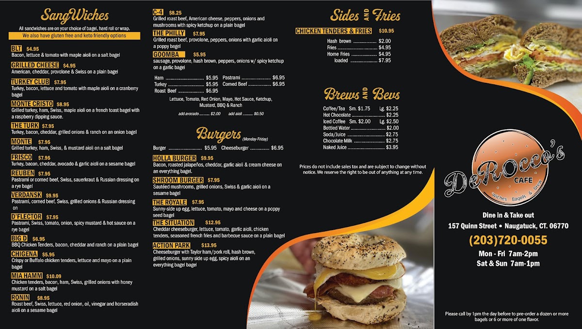 DeRocco's Wiches Bagels and Brew Menu